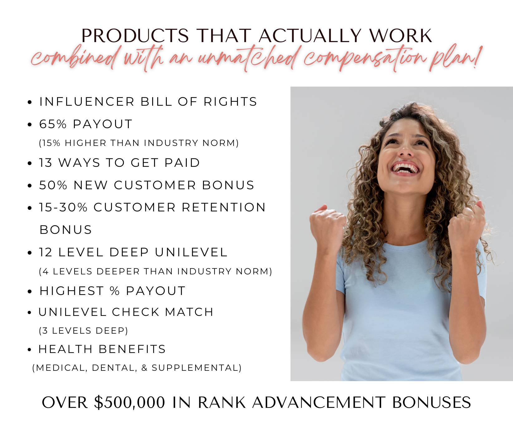 Become an Influencer and start earning on product sales through your very own personal website. You will be supported every step of the way with product & business training, virtual tools, upline support and more! Not to mention, access to an incredible online community surrounding you on your journey to helping others and making a lasting impact in their lives.